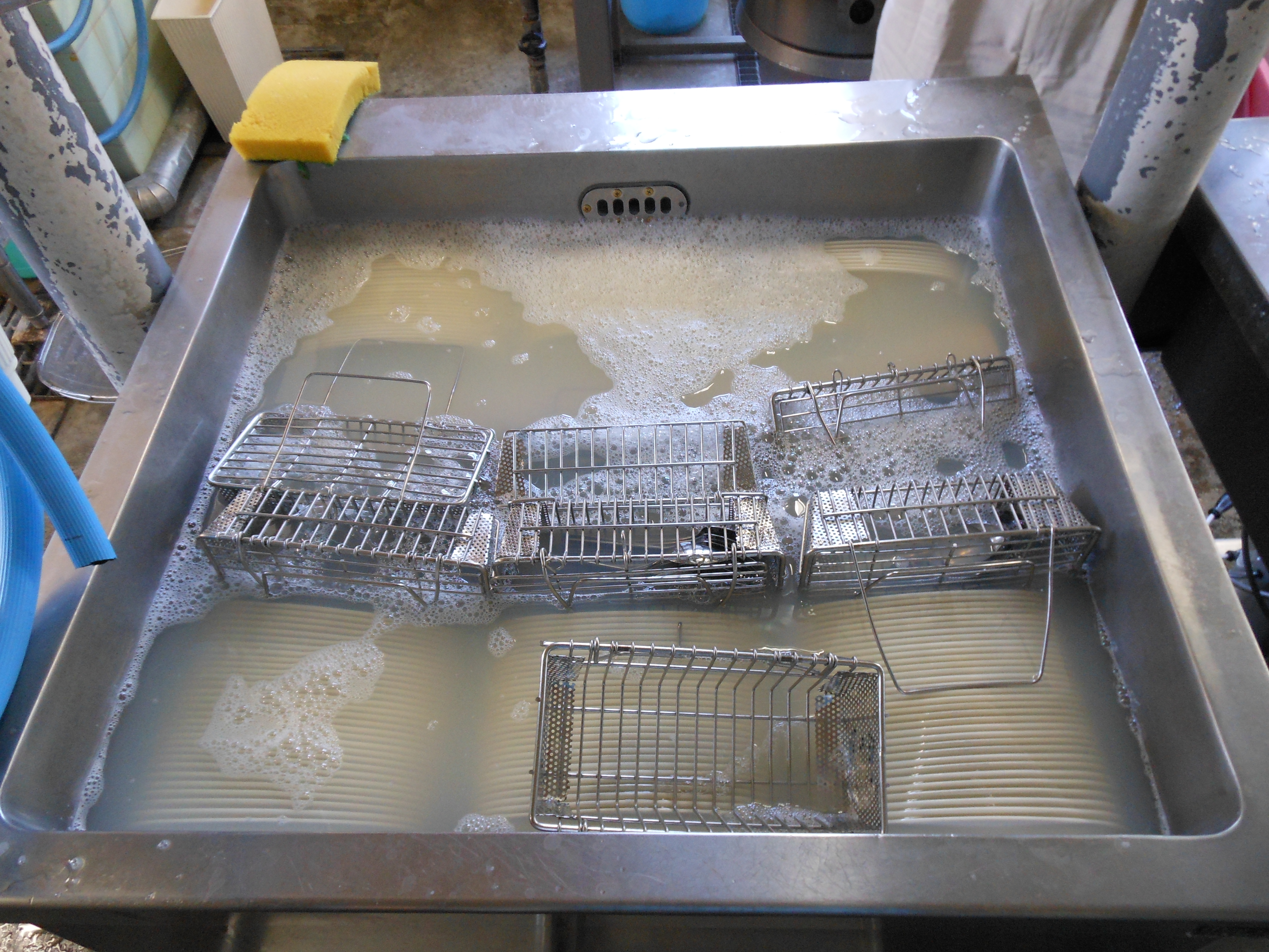 休憩時間位(1時間)、パワーソープを溶かした石鹸水で浸け置きしてください。