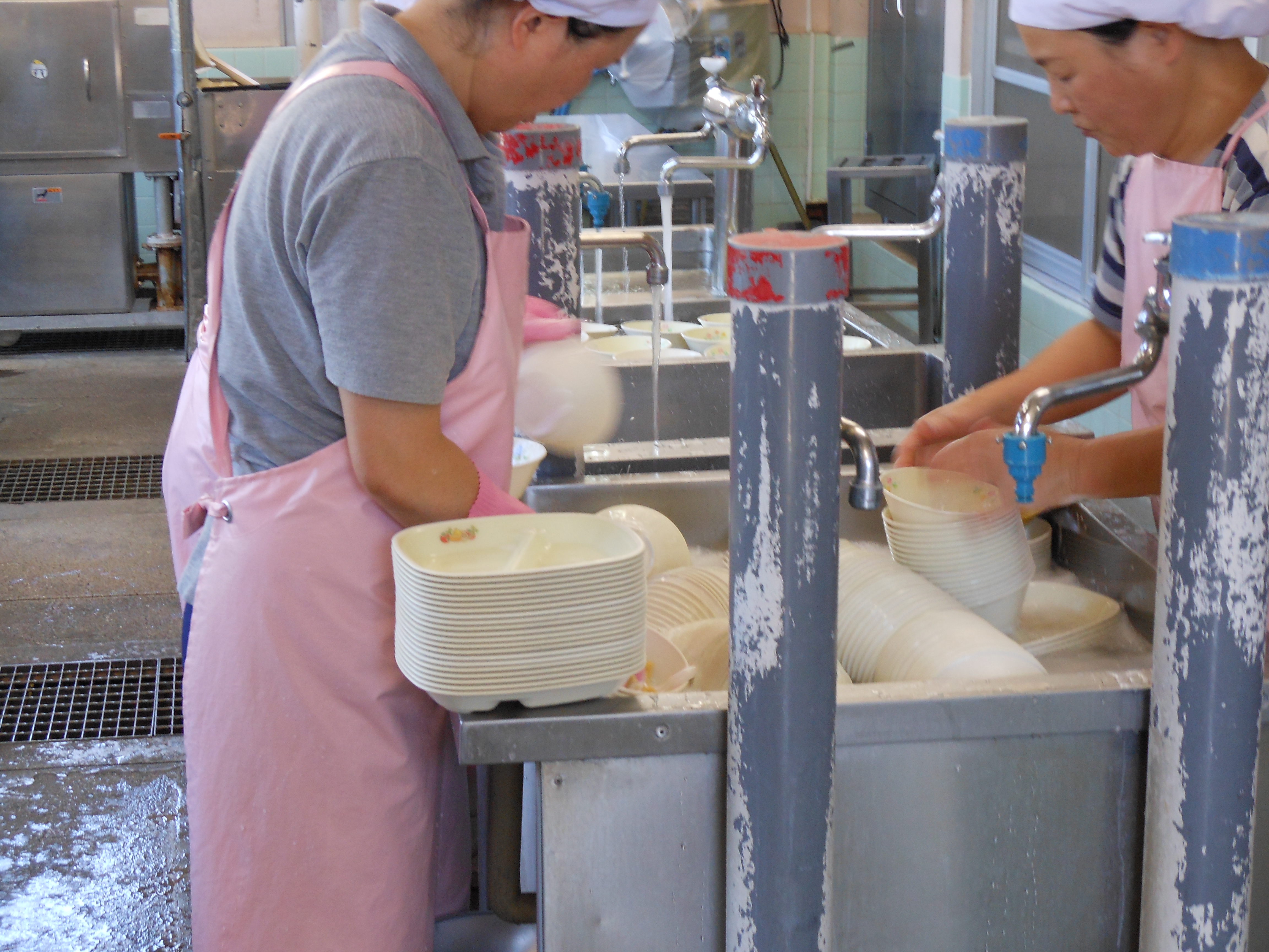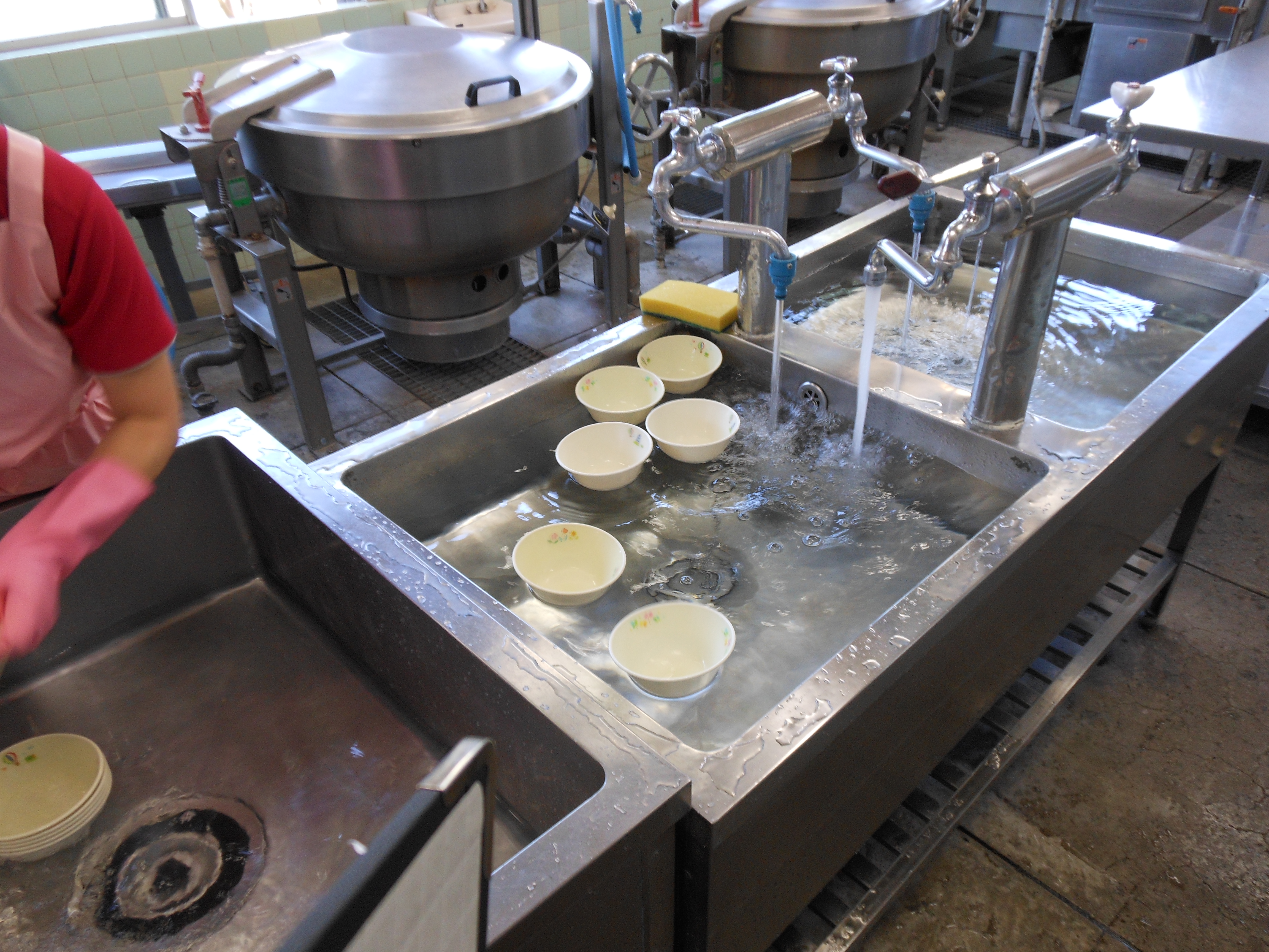 Q,小学校の栄養教諭ですが、学校給食の食器の洗い方のコツを教えてください。